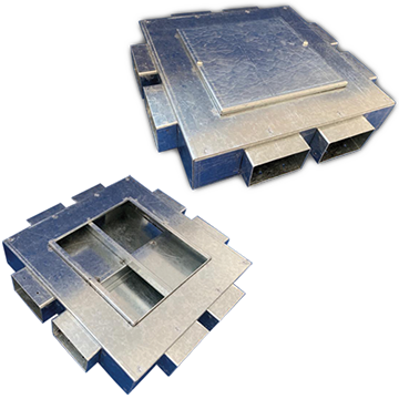 - Cada salida incluye cople metálico rectangular para montar placa en piso y hacer en registro.